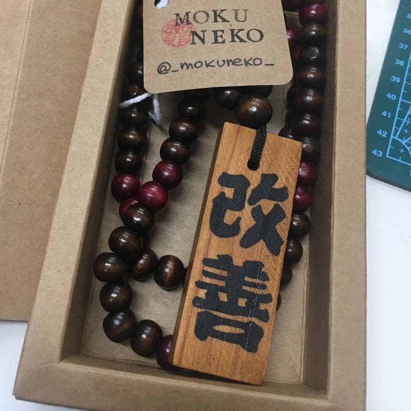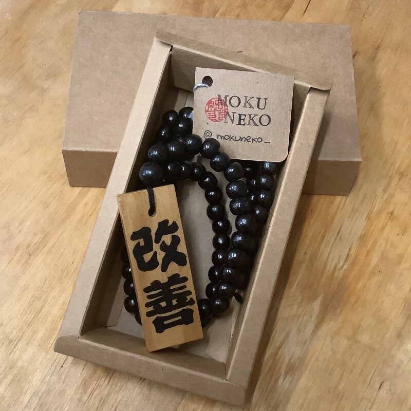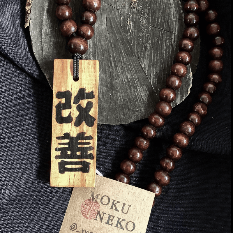 Colgante kifuda con el mensaje KAIZEN ‘mejora continua, cambios a mejor’.