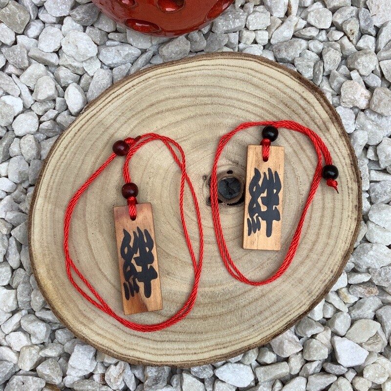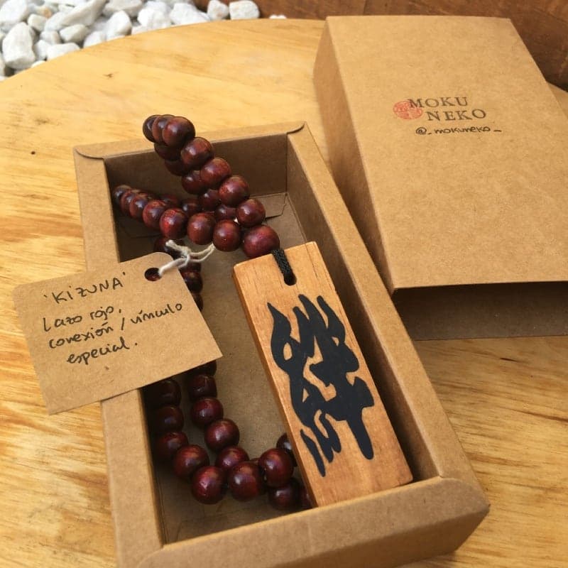 Colgante kifuda con el mensaje KIZUNA ‘lazo rojo, conexión/vínculo especial’.