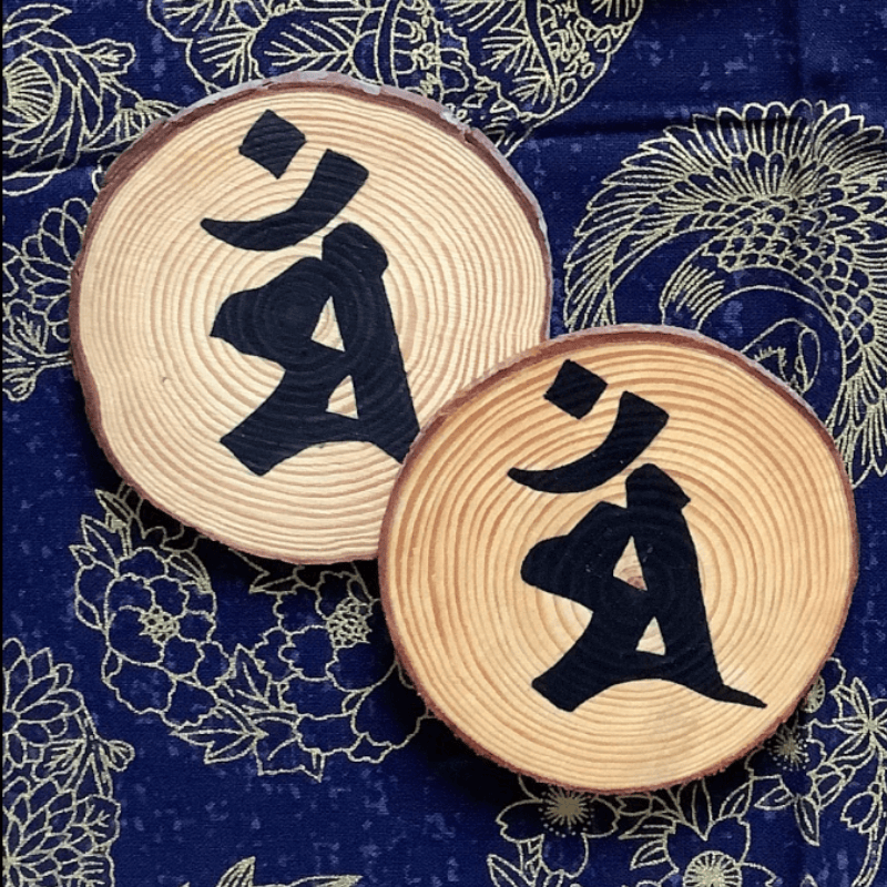 Materiales: madera de pino natural, tinta japonesa y barniz protector.