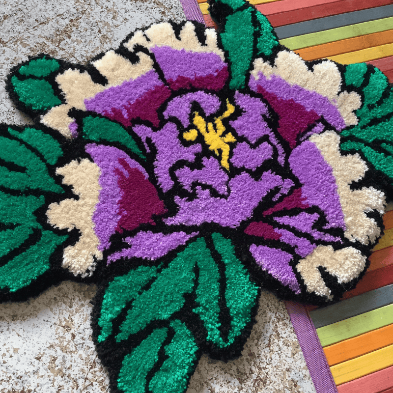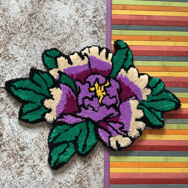 Tapiz hecho a mano con la técnica tufting BOTAN, peonia.